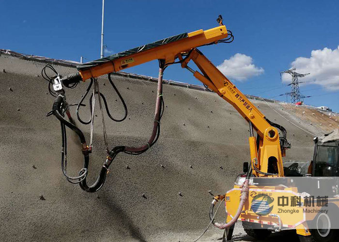 混凝土濕噴臺車是智能化混凝土濕噴設(shè)備,代替?zhèn)鹘y(tǒng)混凝土噴漿設(shè)備,具有施工機(jī)械化程度高、安全性強(qiáng)、工作效率高、覆蓋范圍廣、回彈率低、操作靈活方便等特點(diǎn)?;炷翝駠娕_車廣泛應(yīng)用于鐵路、公路隧道、邊坡、水利、水電的隧洞和涵洞、地鐵以及各種建筑工程等濕噴混凝土作業(yè)。